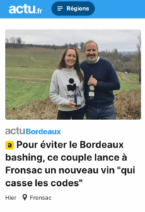 Être cité par Actu.fr – édition Nouvelle-Aquitaine, c’est une validation, un signal fort que quelque chose est en train de bouger dans le vignoble bordelais… et plus précisément à Fronsac, au Château La Fontaine.